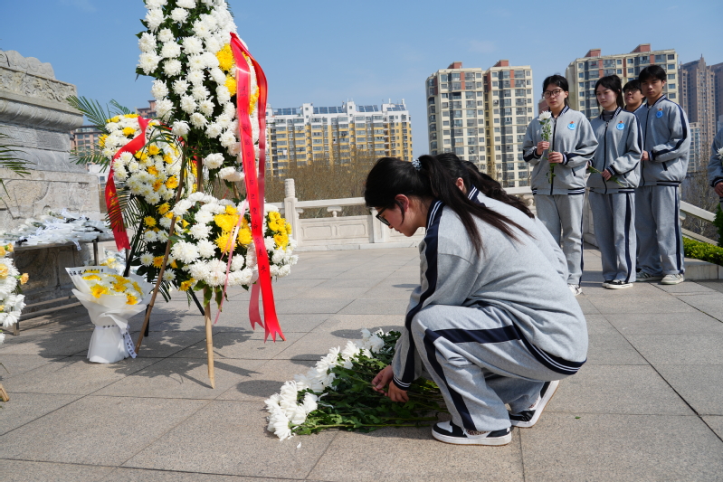 活动在庄严肃穆的国歌声中拉开序幕。全体师生向革命烈士纪念碑肃立行注目礼,优秀团员代表向纪念碑敬献花圈,全体师生依次上前敬献鲜花,表达对先烈的崇敬与追思。