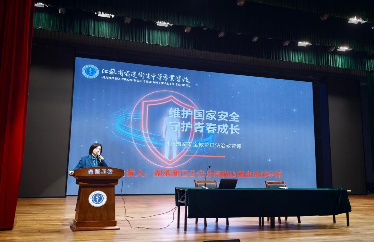 为强化全校师生国家安全意识与法治观念,筑牢校园安全防线,在全民国家安全教育日来临之际,宿迁卫校特邀湖滨新区公安分局晓店派出所民警刘宇轩,开展“维护国家安全 守护青春成长”主题法治宣讲活动,25级全体班主任、学生参加活动,活动由学工处处长杨阳主持。