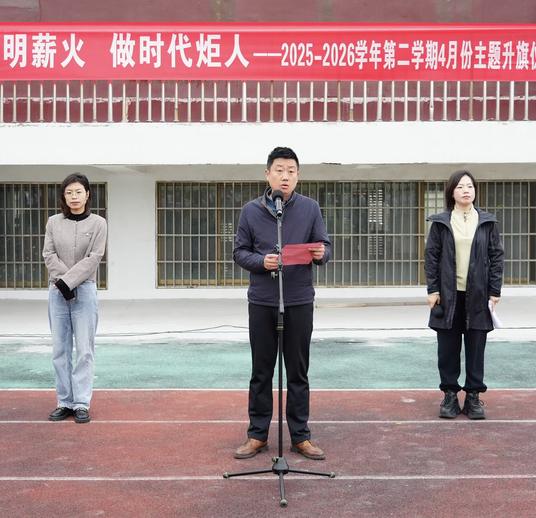 荣峰在国旗下发表主旨讲话,他寄语全体学生,以四月清明的追思为精神坐标,涵养“医者仁心”的大爱情怀。他号召同学们从点滴做起——整洁的着装、得体的发型、干净的面容,是未来医务工作者最基本的职业形象;主动问好、有序排队、节约粮食、不说脏话,这些文明习惯就是递给社会的第一张名片。全体宿卫学子要像海绵吸水一样汲取知识,在反复实训中积蓄力量,将每一次注射、每一份病历都化作对生命的守护,以“甘于平凡、不甘平庸”的人生态度,在医护之路上践行初心、筑梦前行,努力成长为堪当民族复兴大任的时代巨人。