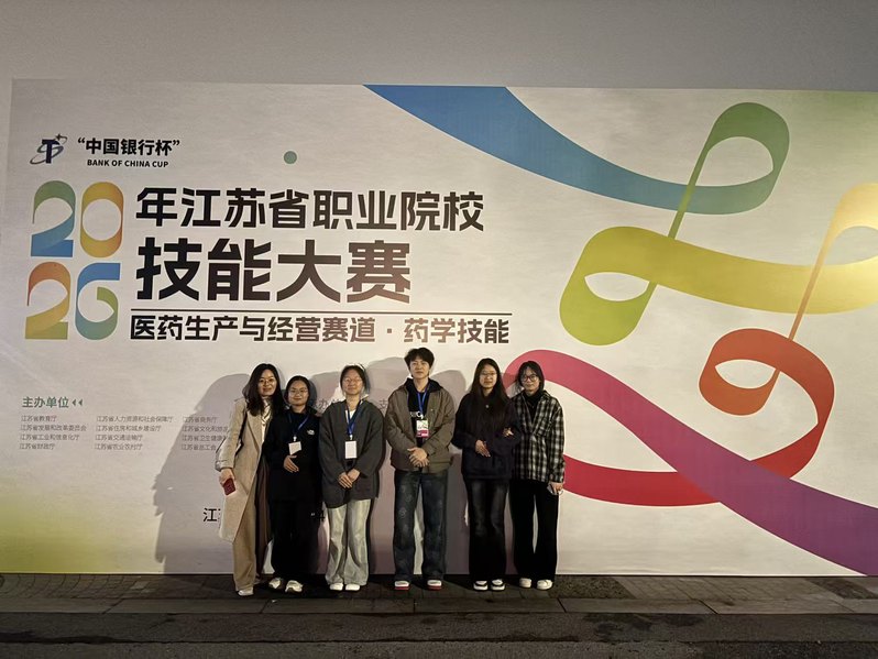 2026年江苏省职业院校技能大赛医药生产与经营赛道药学技能项目于4月12日在苏州卫生职业技术学院圆满落幕。来自全省20所职业院校优秀选手同台竞技,宿迁卫校药学检验系的崔曼雨、袁国旭、王蕊、邱雯希四位同学组成的参赛团队荣获三等奖。