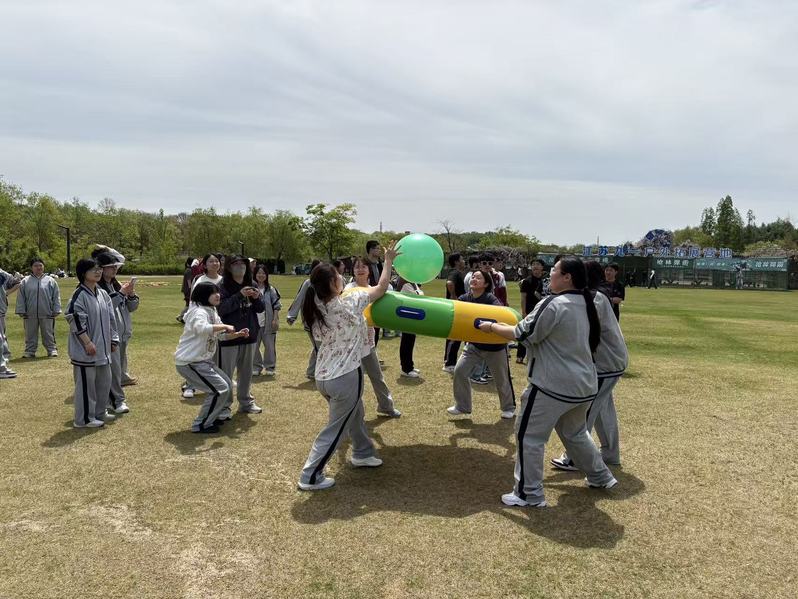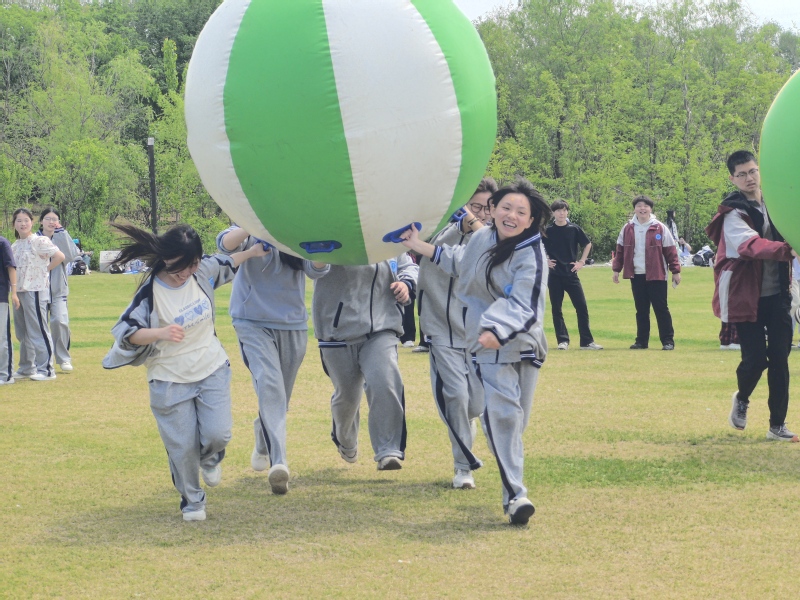 “团队凝聚力建设”——游戏释放压力。镜湖旁的草坪上,加油声、欢笑声此起彼伏。一场趣味拓展活动正在火热进行。一个个精心设计的团队游戏,不仅考验着学生的反应与默契,更将课堂上学到的沟通协作技巧运用到了实践中。起初的手忙脚乱,在一次次尝试和鼓励中变得配合无间。班主任们也纷纷加入,与学生们并肩作战。成功的欢呼与失败的鼓励,让班级的凝聚力在汗水与欢笑中得到了无形的升华,平日里学业的压力也在此刻得到了尽情释放。
