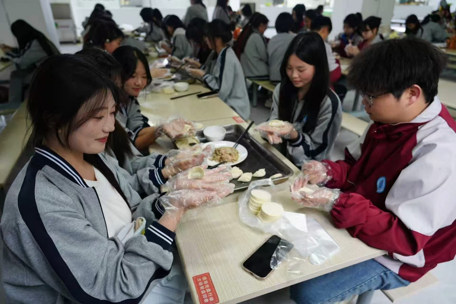 为深入推进“强体润心”工程,将健康饮食教育融入校园文化实践,传承中华传统饮食文化,丰富校园文化生活,增进学生会成员凝聚力,4月24日下午,宿迁卫校校学生会在校园食堂举办“‘食’刻相伴,暖润校园”饮食体验主题活动,学生会成员亲手包饺子、品美食,在劳动中感受快乐,在协作中凝聚力量。